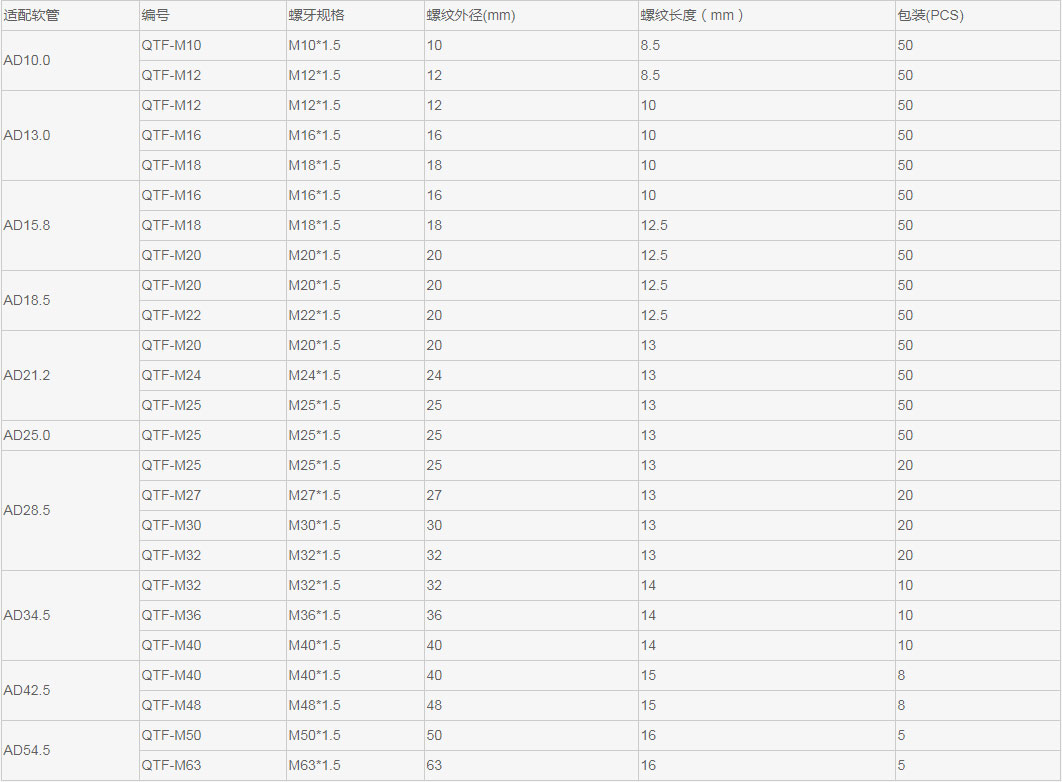 上一頁:M16*1.5/AD13.0內螺紋快速固定頭波紋管直插式